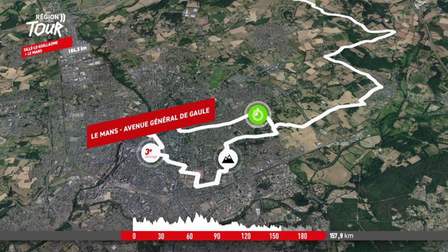 Quel final de parcours ! Une longue étape parsemée de difficultés technique, avec une première partie sous forme de boucle en terres mayennaises. Le peloton reviendra plein ouest sur un tracé tout en courbes à travers le nord du Mans, un paysage agricole, quelques forêts et toujours les bocages propres aux Pays de la Loire. Un itinéraire qui passera par Conlie, La Chapelle-Saint-Fray, La Bazoge… Le final d’étape sera de toutes façons spectaculaire dans la cité mancelle : profitable aux sprinteurs, le Côté de Gazonfier sera encore franchi à cinq reprises avant la ligne d’arrivée.